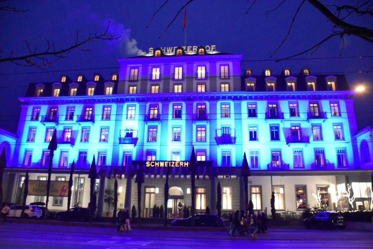 Luzern hat 86000 Einwohner. Vor beginn des Licht Festival ein gang über die Kapellbrücke, ein historisches Denkmal, mit dem historischen Wasserturm, er ist 35m hoch und steht im Wasser, er wurde schon vor der Brücke 1290 erbaut. Weiters das Löwendenkmal, 1821 eingeweiht, inmitten einer Felsgrotte der sterbende Löwe von Luzern. Erinnert die im Jahr 1792 bei der französischen Revolution gefallenen Schweizer Soldaten.